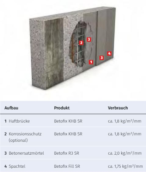 Betonersatzsysteme Betofix EM 4 2K und Betofix EM 8 2K